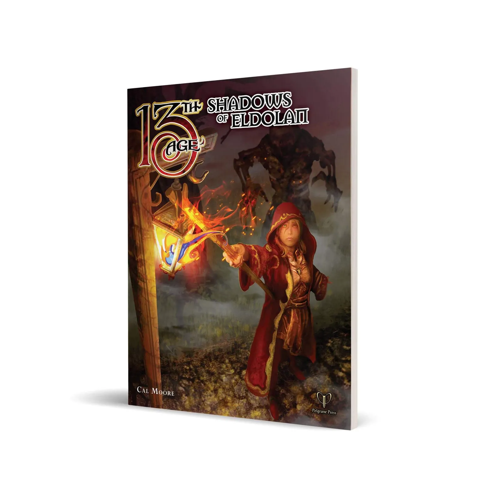 Shadows of Eldolan is an introductory 13th Age adventure for 1st level heroes that provides a GM with a partially fleshed-out town setting full of intrigue. Whether you use it as a location to base adventures out of, or simply as a starting point for a campaign, it contains plot hooks and adventure options for any style of play.