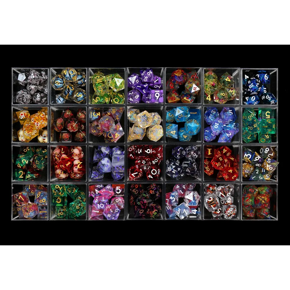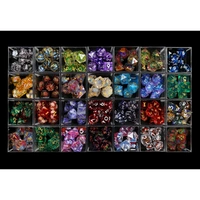 With over 100 colors and styles available, you are sure to reveal a unique dice design every time. Perfect for players who crave one-of-a-kind and collectible dice. Every bag includes one complete RPG dice set, one enamel pin, and one sticker.