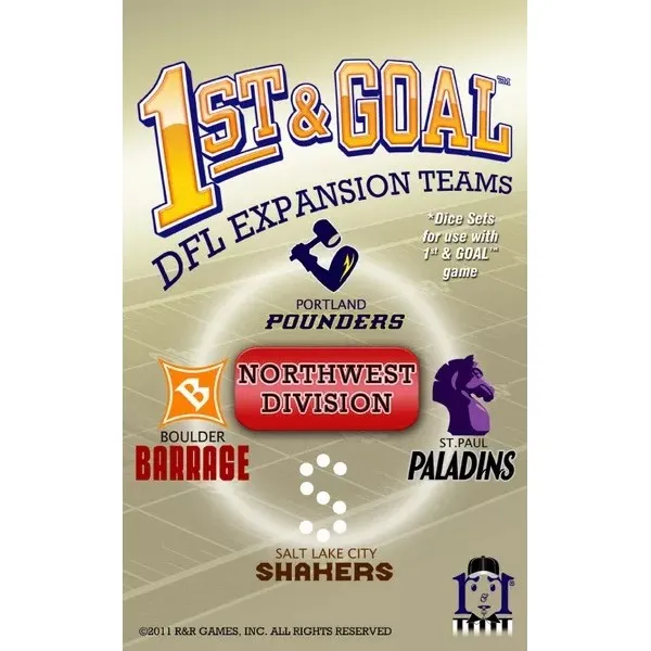 1st & Goal: Northwest Division, an expansion for 1st & Goal, contains 28 dice which make up 4 custom teams. The Dice Football League (DFL) Northwest division includes the following teams: