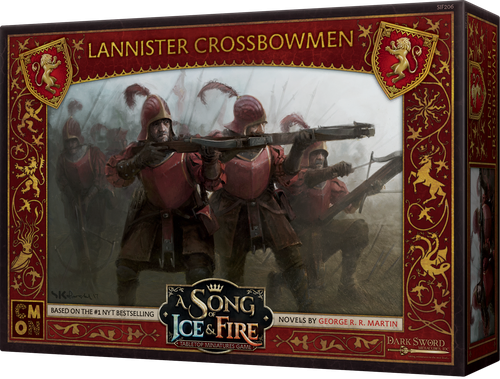 When it comes to training soldiers, crossbowmen require a lot less work than average. The real cost comes in the production of the crossbow, itself. Technological advances aren't cheap, and keeping weapons in working order during war is no easy task. Still, a family with resources like the Lannisters can afford to keep this ranged killing machine armed and ready for battle. The A Song of Ice & Fire: Tabletop Miniatures Game – Lannister Crossbowmen unit box contains twelve miniature figures in four different sculpts, one unit card, and one movement tray. This unit of deadeye soldiers takes advantage of the technology available to a family of means. At close or long range, their bolts can pierce even thick armor. However, a wise commander will keep them away from melee charges, if possible.
