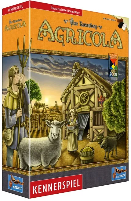 In Agricola, you're a farmer in a wooden shack with your spouse and little else. On a turn, you get to take only two actions, one for you and one for the spouse, from all the possibilities you'll find on a farm: collecting clay, wood, or stone; building fences; and so on. You might think about having kids in order to get more work accomplished, but first you need to expand your house. And what are you going to feed all the little rugrats?