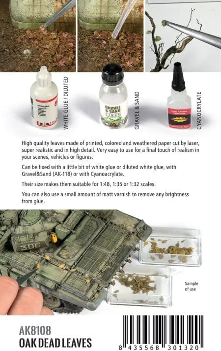 Their use brings a distinctive and ultra-realistic touch to your dioramas, scenes and vehicles. Can be easily fixed in place with tiny quantities of white glue, diluted white glue, or using our original AK118 Gravel & Sand Fixer.