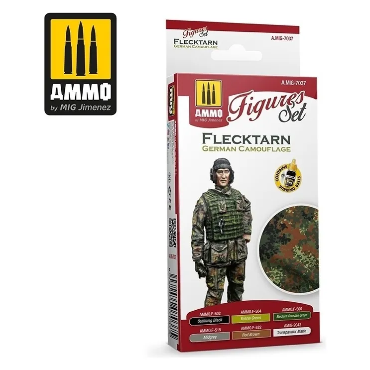 High quality acrylic paints designed to make painting your miniatures easy. This pack includes the 6 colours needed to paint the Flecktarn camouflage pattern uniform used by modern German armoured units, among others. This includes the crews of the ever-popular Leopard 2, Puma, and Boxer. These colours have selected through rigorous research to ensure accuracy when creating highlights, volume, and define details.