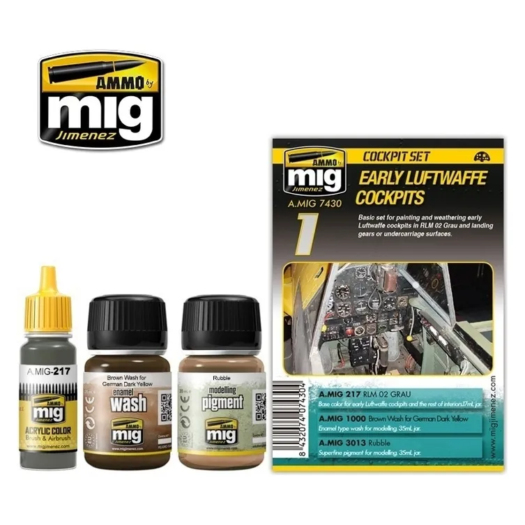 Set with Pigment, Wash Jars. 35 mL and acrylic Jar. 17mL Basic set for painting and weathering on early Luftwaffe cockpits.