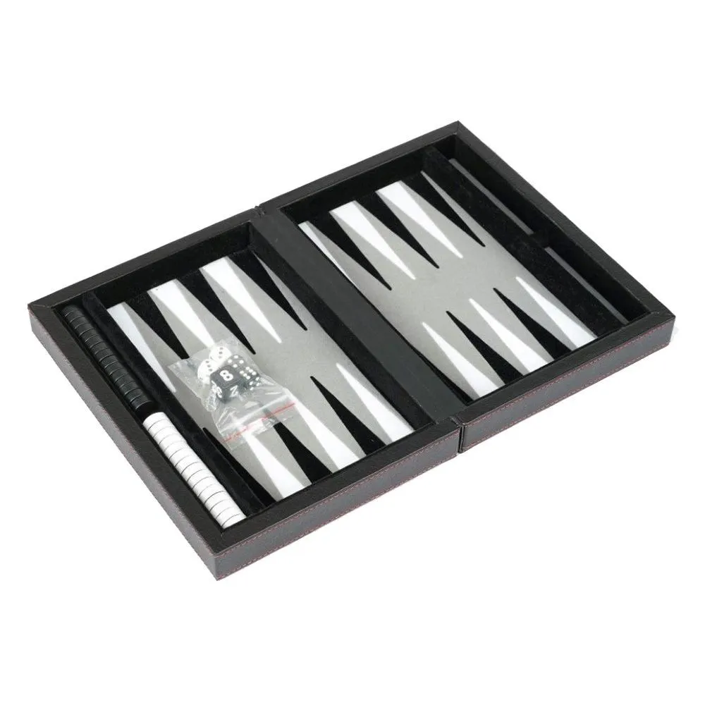 Black Leather Travel Backgammon Board Game