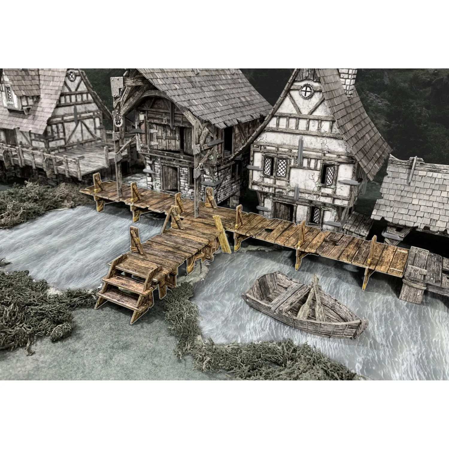 This pack upgrades your gaming table with a set of raised wooden walkways. They are perfect for piers and jetties in dockside areas or for getting around a waterlogged or swampy board. The set includes three 6" / 15cm walkway sections and a set of wooden steps. The pieces are compatible with the rest of the Battle Systems Fantasy range.