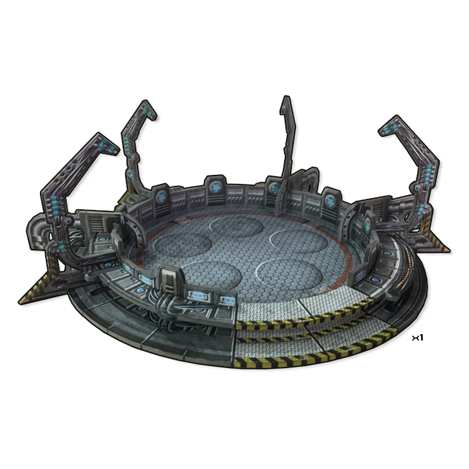 This pack upgrades your sci-fi gaming table with a mystical gate. It has a large reactor chamber and computer consoles to control the portal and adds a new dimension to your games. The vortex in the centre is removable. The set is compatible with any of the Battle Systems Sci-fi Core Sets.