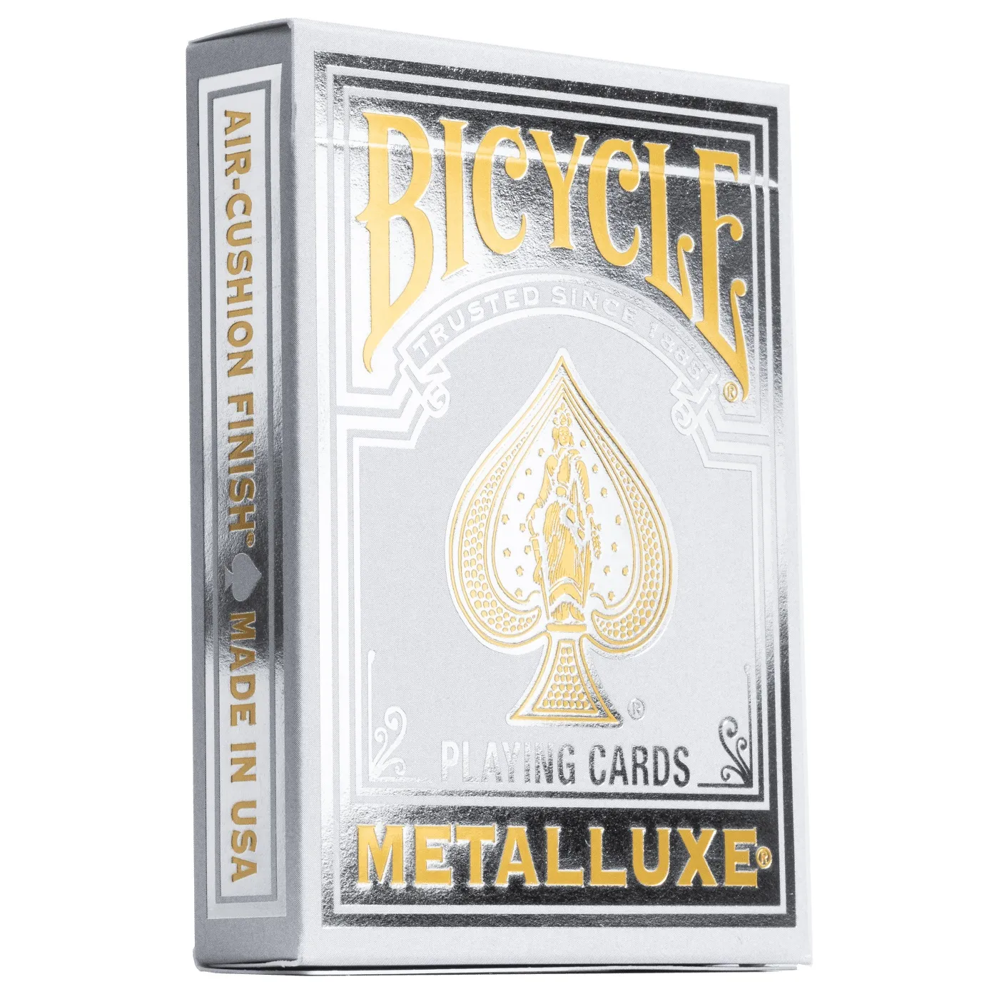 Enhance your card games with Bicycle Metalluxe Playing Cards. These premium cards feature a stunning silver metal foil finish, adding a touch of luxury to your gaming experience. Crafted with premium quality cardstock, they feature an Air Cushion Finish for effortless shuffling and seamless handling, enhancing your overall gameplay and providing a professional playing experience. These cards are not only perfect for various card games, such as poker, bridge, and blackjack, but also for performing captivating magic tricks. Perfect for collectors, the eye-catching metal foil design makes them a standout addition to any playing card collection. Upgrade your game night and enjoy endless hours of entertainment.