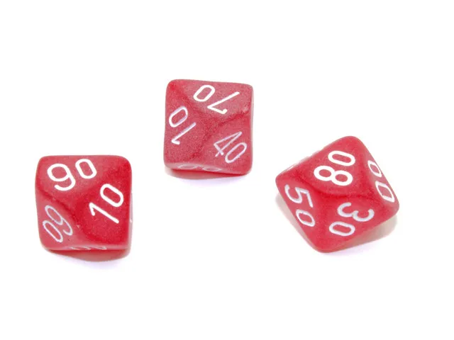 Frosted Polyhedral Red/white Tens 10 ~ Multiple loose dice are pictured to show all sides and possible color variations. Item Code is for individual dice.