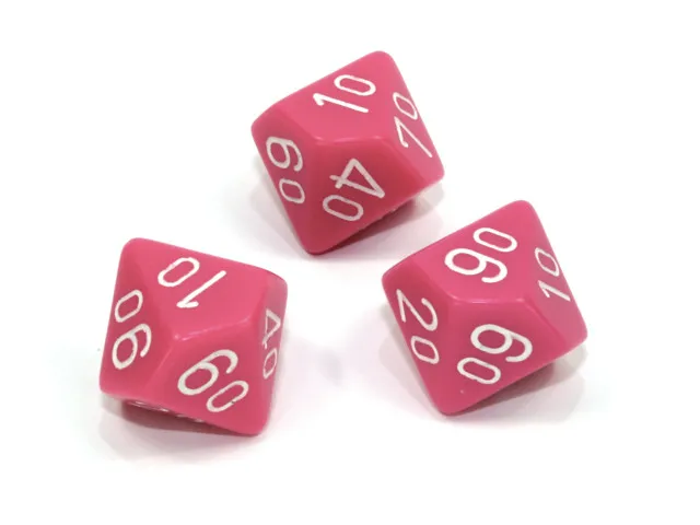 Opaque Polyhedral Pink/white Tens 10 ~ Multiple loose dice are pictured to show all sides and possible color variations. Item Code is for individual dice.