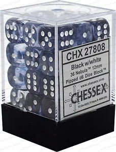 Nebula 12mm d6 Black/white Dice Block (36 dice)