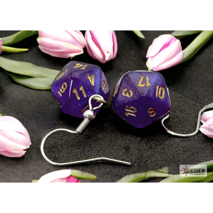 Hook Earrings Borealis Royal Purple Mini-Poly d20 Pair.