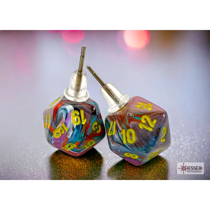 Stud Earrings Festive Mosaic Mini-Poly d20 Pair.