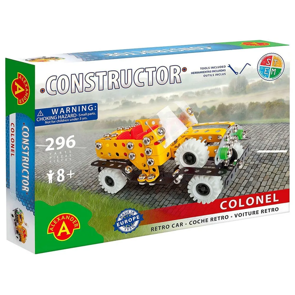CONSTRUCTOR is a series of toy models to assemble on your own. This 296 piece ‘Colonel’ retro car consists of metal pieces of different shapes and sizes with complementary plastic parts visually enhancing its design. Includes tools with which to assemble the kit.