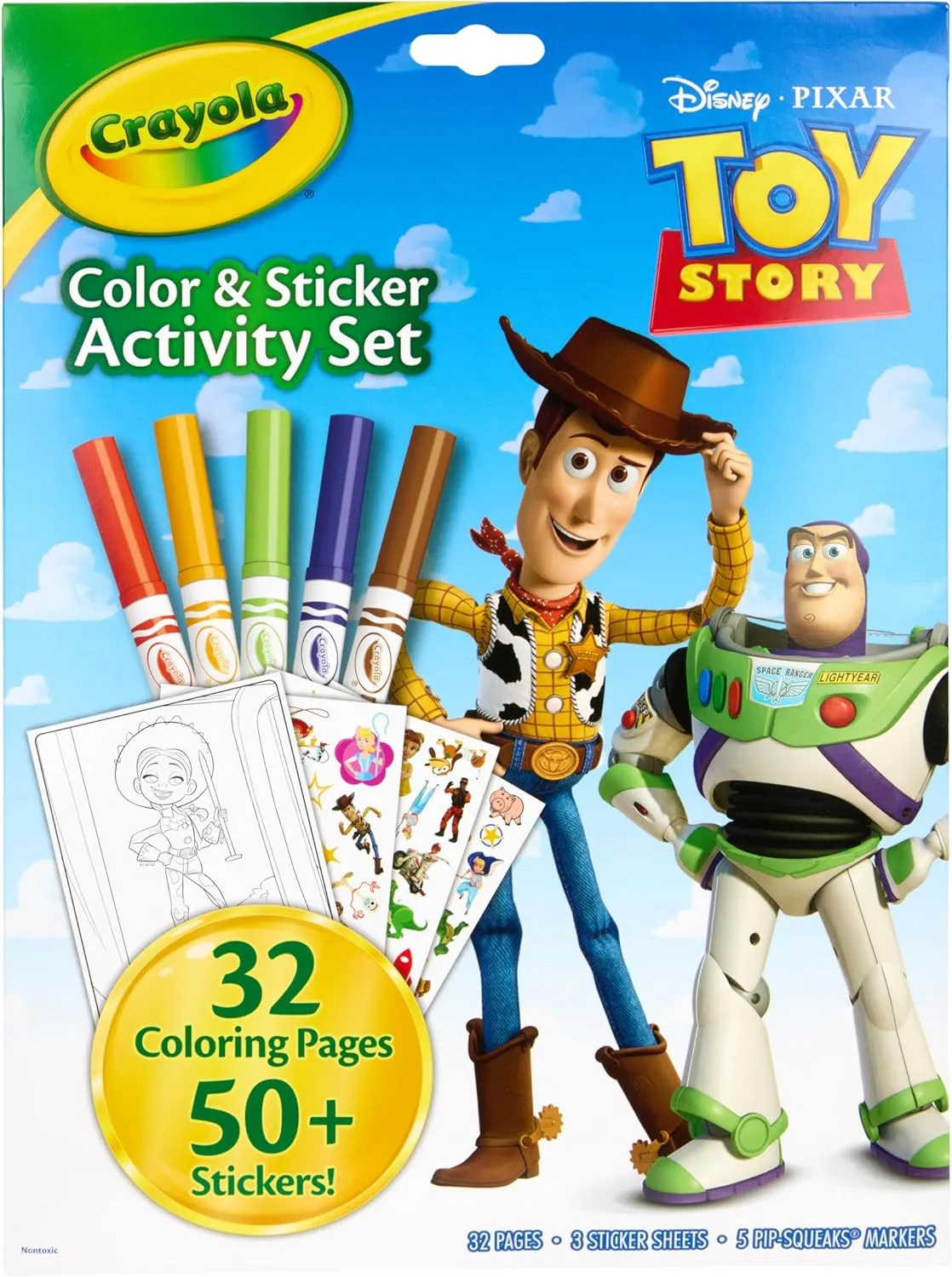 Bring the adventure of Toy Story 5 to life with the Crayola Color & Sticker Activity Set! Packed with 32 coloring pages, 3 sticker sheets, and 5 Pip-Squeaks washable markers, this all-in-one kit gives kids everything they need to color, decorate, and create their own stories. With over 50 themed stickers, kids can customize their artwork or add flair to notebooks, lunchboxes, and more. Featuring favorite Toy Story characters.