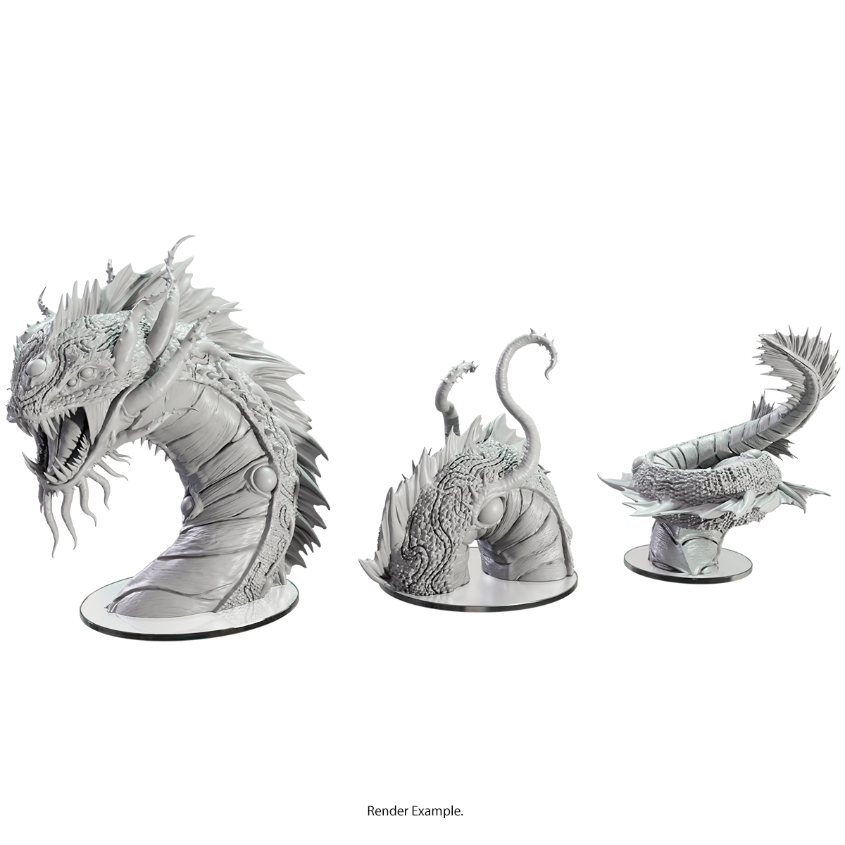 Fresh off its debut during The Mighty Nein Reunited special, Critical Role Unpainted Miniatures: Uk’otoa brings an unpainted version of the tabletop miniature directly to your collection primed and ready to paint! This gargantuan miniature features 3 pieces; head, midsection, and tail, all on their own bases that can be posed or positioned all over the battlefield as the rest of the impossibly long serpent coils beneath the waves. The head, bearing down on its prey, or rewarding those that set it free, stands nearly 5 inches tall. The massive tail curves out of the water, looking to drag someone below, and can hold 1 unlucky medium creature on a 25mm base.