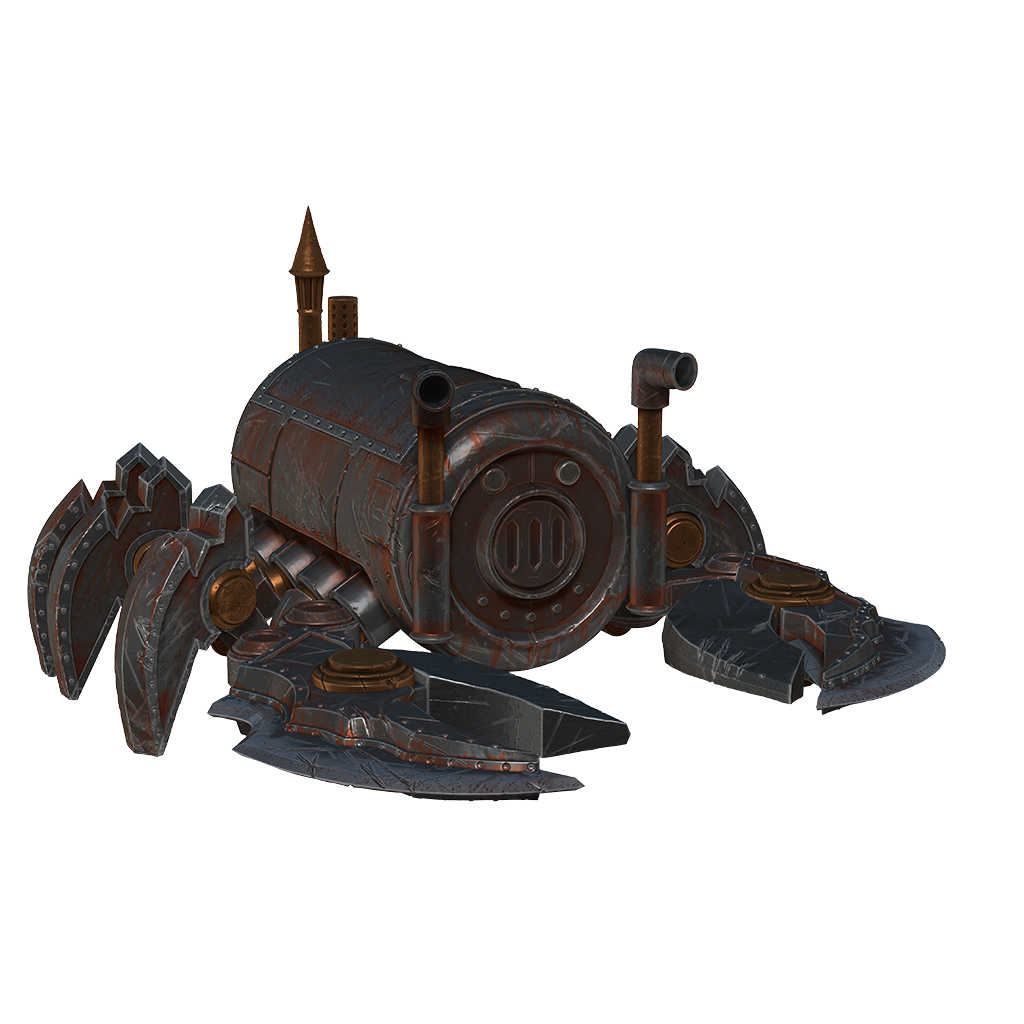 This item first appears to be a Large sealed iron barrel weighing 500 pounds. The barrel has a hidden catch which when released unlocks a hatch at one end of the barrel, allowing two Medium or smaller creatures to crawl inside. Ten levers are set in a row at the far end, each in a neutral position, able to move either up or down. When certain levers are used, the apparatus transforms to resemble a giant lobster.