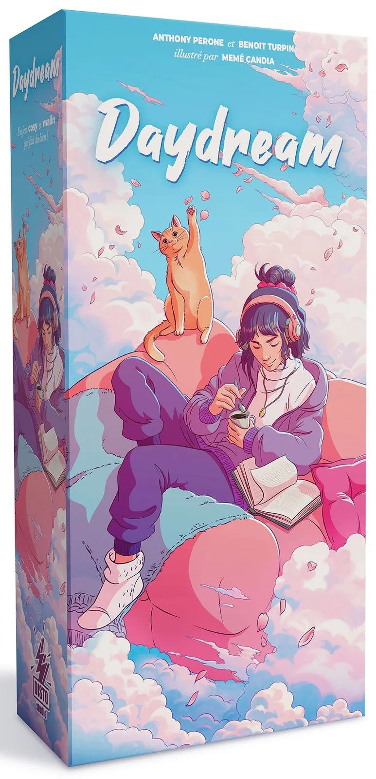 Daydream is a cozy roll-and-write. Fill your cloud grid simultaneously adding the values of the dice. Make the right choices so that each cloud line contains only different numbers. Even better, if the numbers are consecutive, you create a perfect line. However, if a number appears more than once, the line is lost. Draw items on the shelf each time you complete a line correctly. Collect as many items as you can to win the game.