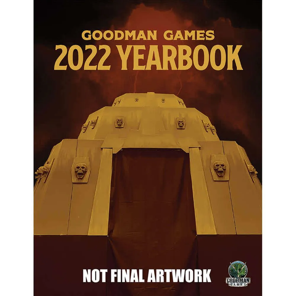 The multiverse spins wildly through the ether and another year passes. Grey-bearded sages reflect upon the days that were, collecting happenings of merit in their demon-hide tomes to be remembered down the eons. One such tome has slipped through the dimensional barriers to manifest as the Goodman Games 2022 Yearbook. Dare you peer within its covers? This annual release from Goodman Games is one part new gaming material, one part retrospective, and one party celebration of all the cool things Goodman Games and its fans accomplished during past year. The 2022 Yearbook contains a bevy of information both entertaining and useful. Within its pages, you'll find interviews, art galleries, new monsters for both Dungeon Crawl Classics and 5e campaigns, two new adventures for 5e and DCC RPG, photographs, random tables, and more! No matter if you like your dice traditional or funky, the Goodman Games 2022 Yearbook makes a handy addition to any gaming library. Don't let time pass you by. Pick up your copy today!"