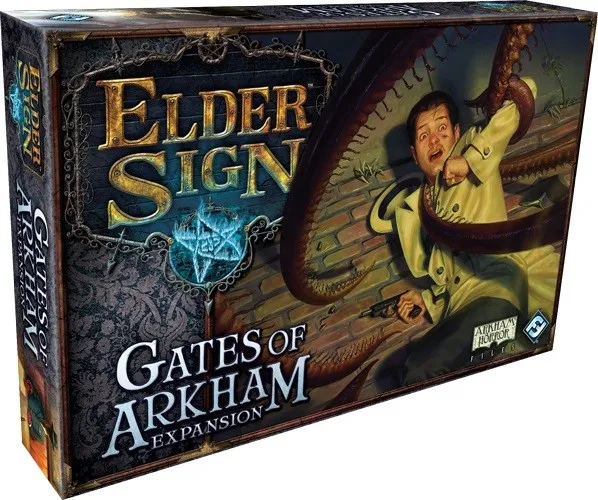 The struggle against the Ancient Ones spreads out of the museum and into the haunted city of Arkham in the Gates of Arkham expansion for Elder Sign. Adventures take place in over twenty locations including Velma’s Diner and the Curiositie Shoppe, Arkham Asylum and the Uninvited Isle. Meanwhile, gates to Other Worlds open throughout Arkham, destabilizing time and space.