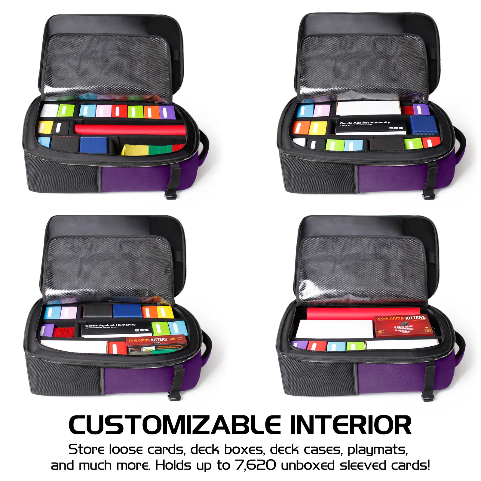 Our backpack features a large spacious interior designed to store up to 7,600 cards (loose sleeved cards), and includes exterior pockets with playmat straps designed to hold MTG playmats used in tournaments and game nights at your local shop. Load up the backpack and head out to your next game fully loaded for a great time. Be sure to check out the entire Tabletop Series line by ENHANCE Gaming to make every night a hit! Max capacity: Approx 7,620 cards.