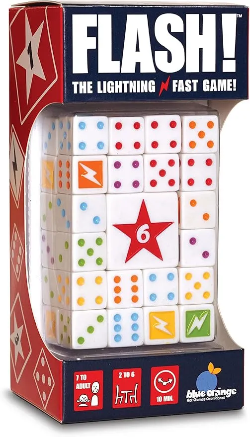 Players race to complete eight challenges and try to rack up the most points. With three play variations, Flash is the go-to dice game for electrifying fun. Straightforward and quick, you can go at it again and again.