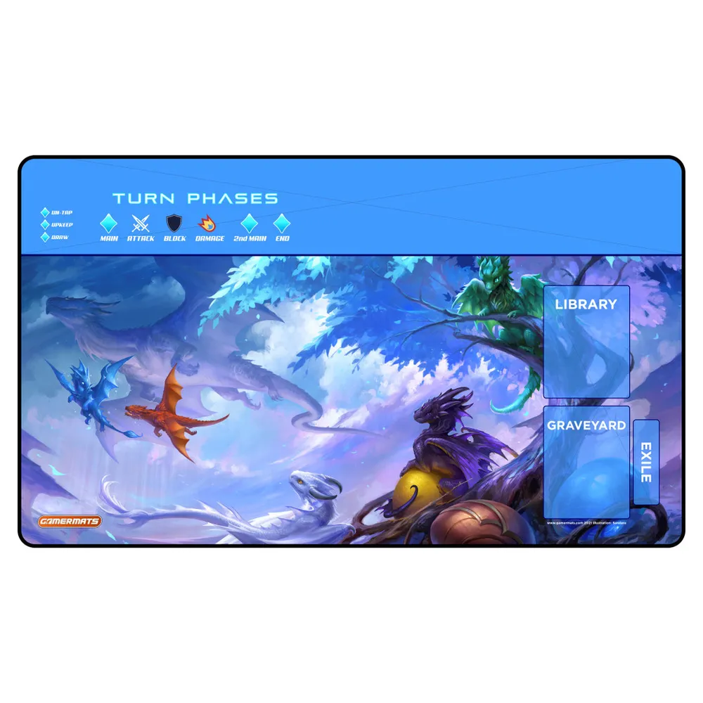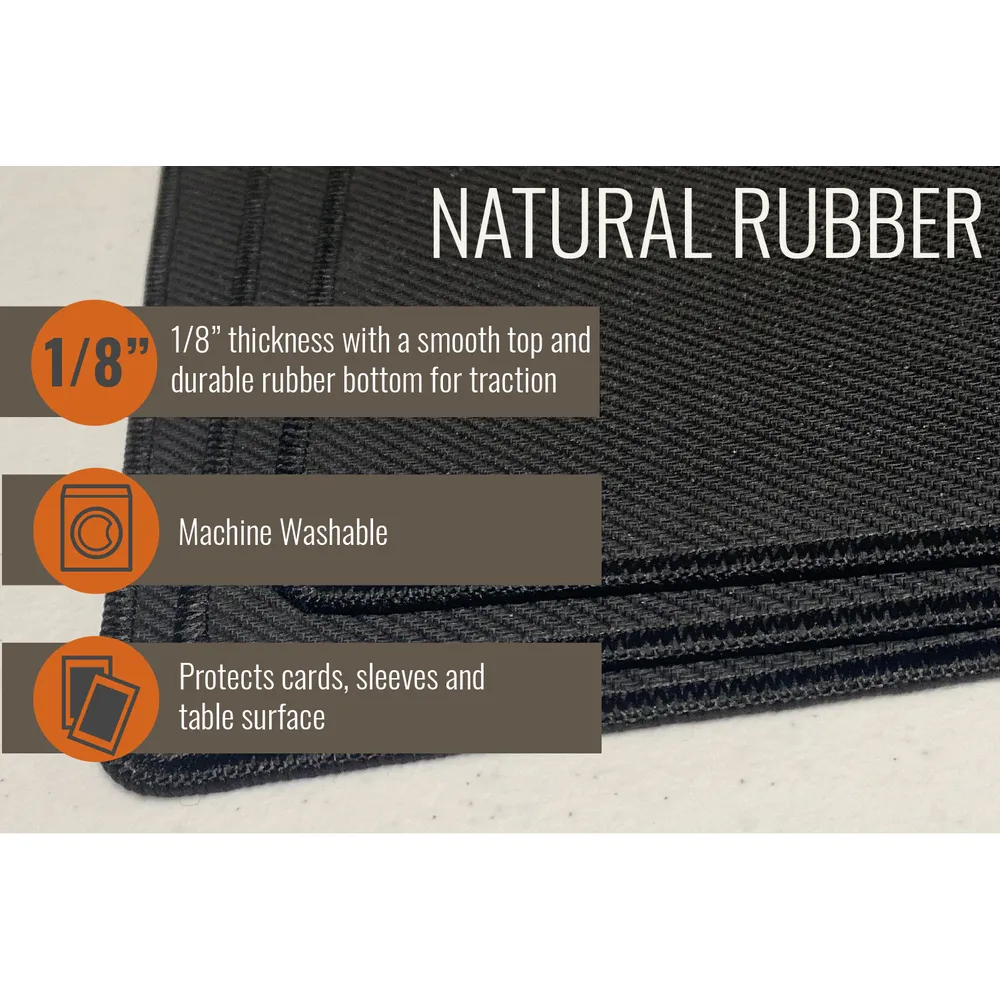 GamerMats playmats are designed with you and your favorite card games in mind. Made with a smooth cloth top and durable rubber bottom, your cards will move easily, but your mat will not. Additionally, our amazing premium black stitching helps images stand out while reinforcing the toughness of the mat.