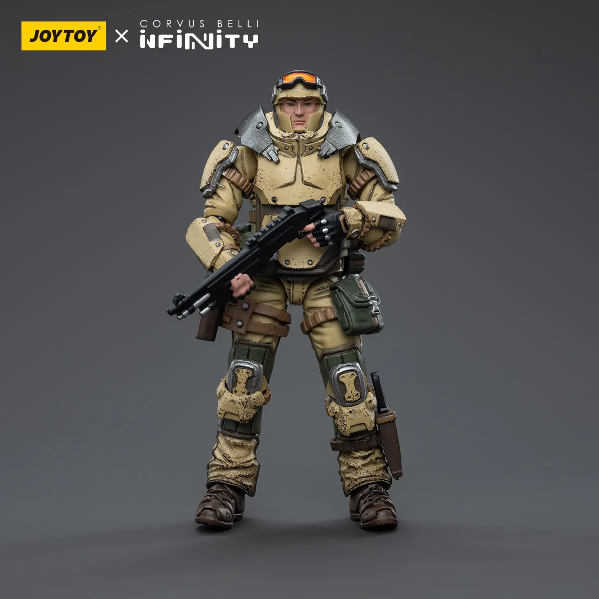Joy Toy brings to the table a new series of figures, inspired after the tabletop wargame published by Corvus Belli. This highly detailed 1/18 scale figure stands just over 4 inches tall and comes equipped with an arsenal of interchangeable parts and weapons. Add the Ariadna Marauders 5307th Range Unit 1 figure, along with other separately sold Infinity figures by Joy Toy, to your collection and build up your army for battle!