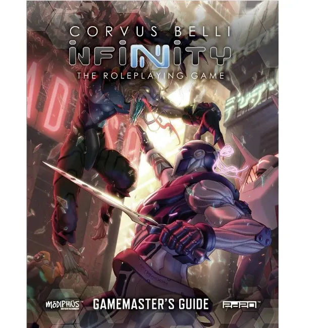 The Infinity RPG Gamemaster’s Guide decodes the mysteries of the Gamemaster’s role, offers insight and advice for organising groups, designing campaigns, and running games, and introduces optional rules designed to offer new layers of immersion in the quantronic age.