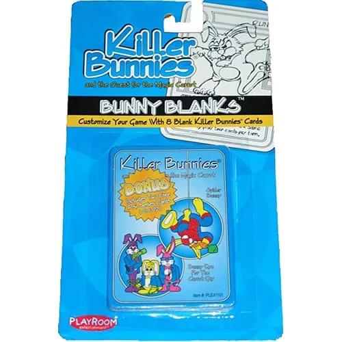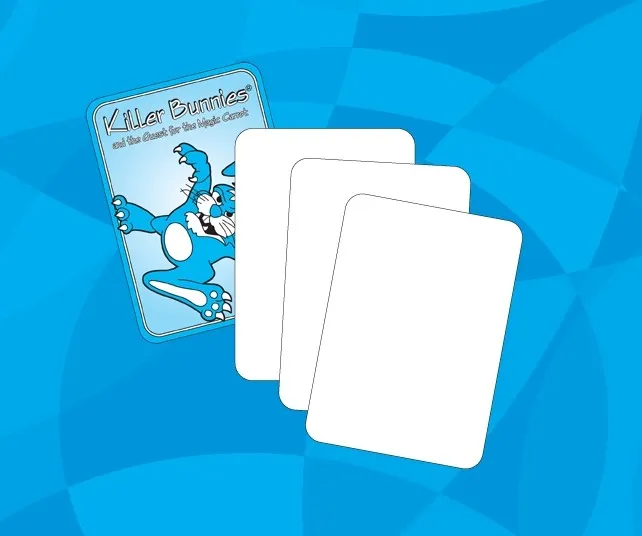 Bunny Blanks are back! Create your own Killer Bunnies cards and incorporate them into your game to make your KB Quest playing experience unique and special, tailored to you and your specific game buddies! Includes 14 Bunny Blanks.