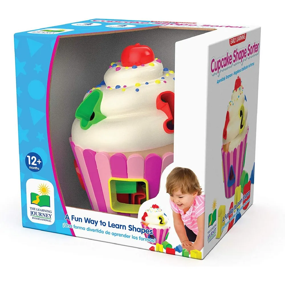 The Cupcake Shape Sorter is a delicious way to help babies and toddlers learn colors and shapes! This sweet treat-shaped sorter will help develop fine motor and cognitive skills by simply dropping the shaped blocks into the matching holes. The eight-shaped pieces store neatly inside. Along with all of the learning benefits, the realistic frosting and cherry are the "Icing on the Cake!" Ages 12+ months