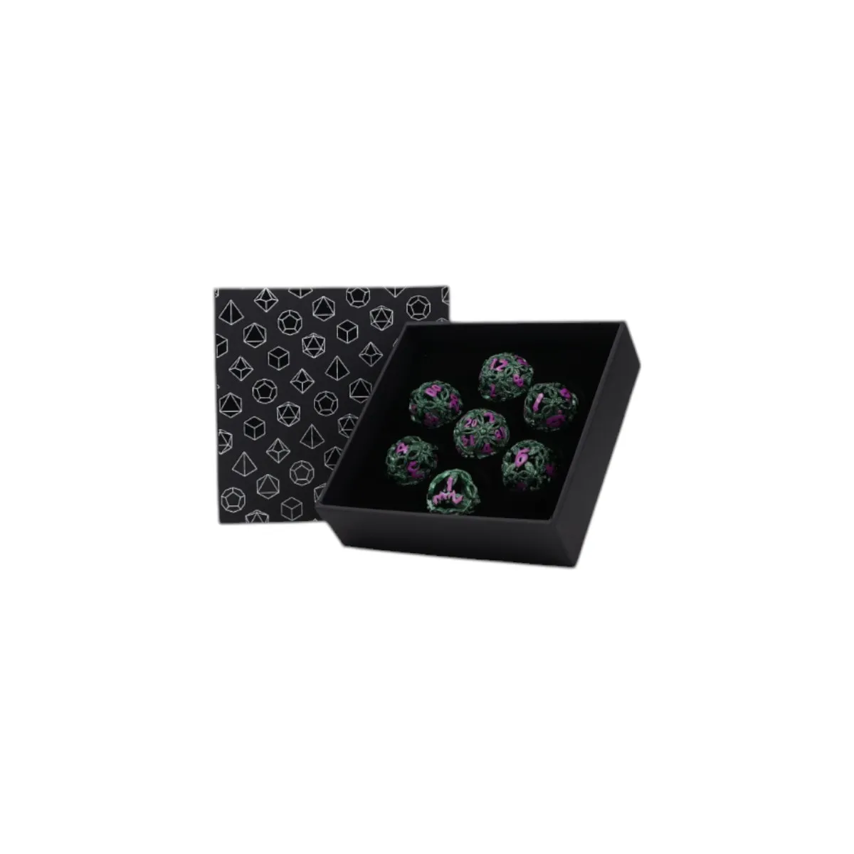 Unleash your inner adventurer with this stunning set of metal dice, perfect for Dungeons & Dragons and other tabletop RPGs. Crafted from durable zinc alloy, these dice boast intricate designs and eye-catching colorways that will stand out on any gaming table. The set comes nestled in a premium gift box, making it an ideal present for the dice goblin in your life.