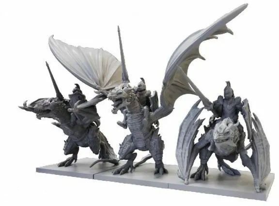 Also known as cold drakes, these winged reptiles are smaller cousins of the dragons. They are easier to tame than their larger kin but are no less ferocious for it. Drakon Riders form units of fearsome, winged shock cavalry. Contents: 3x resin models 3x 50mm bases Please Note: Miniatures supplied unpainted and some assembly may be required.