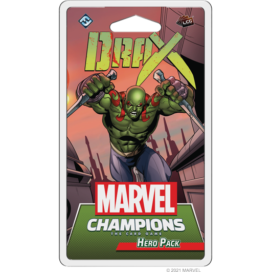 As a member of the Guardians of the Galaxy, Drax charges into the scene with unrelenting fury in this expansion pack, which introduces Drax as a brand-new playable hero, along with his fifteen signature cards. With a pre-built Protection deck ready to go, you’ll be able to try out Drax’s unique vengeance-fueled gameplay from the moment you open the box. Punish the villains who wrong you and show them why Drax is a force to be reckoned with!