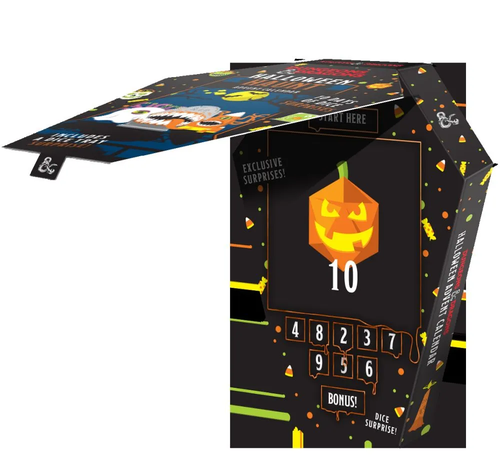 A new addition to this spooky season is the Halloween Haunt Advent Calendar which includes all the accessories you need to play! Countdown the 10 days to Halloween with the official D&D advent calendar that includes a dice tray, a custom D&D inclusion dice set, a D&D glow in the dark die, an exclusive metal d20, and a dice bag to carry your loot!