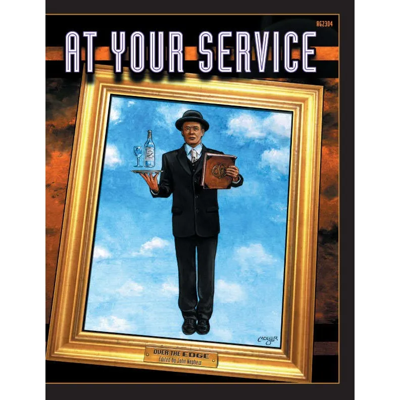 At Your Service is a sourcebook of Al Amarjan locations for Over the Edge, the classic roleplaying game of surreal danger. It features nearly three dozen unique establishments in the Edge and environs, from Ahmad's Computer Shack in Science Barrio, to the notoriously haunted Wind Farm just outside the city. As a resource for Game Moderators, it features developed locations that can be dropped into play on the spur of the moment, including detailed NPCs, plus story ideas to inspire plots involving the player characters. It's a gold mine of ideas for any modern game setting involving the unusual and supernatural.