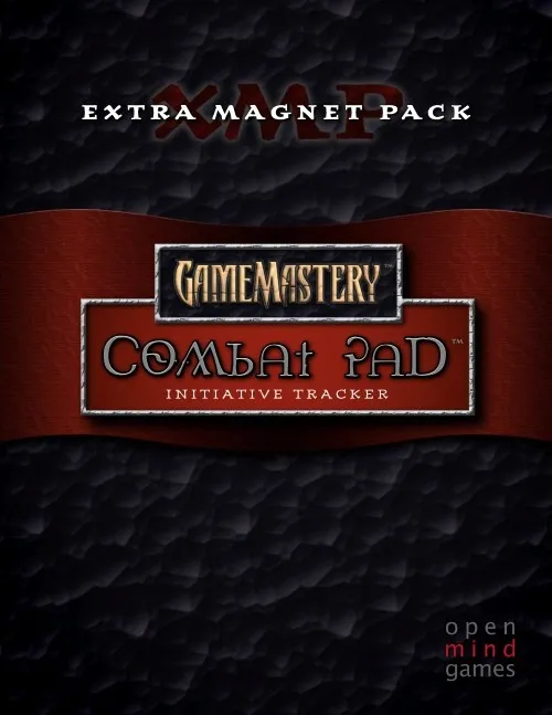 Where have all your magnets gone? Replenish your dwindling supply of GameMastery Combat Pad magnets! Extra Magnet Pack makes it possible to orchestrate epic battles—or simply replaces missing magnets! Use a wet- or dry-erase marker to write PC, NPC, and enemy names on blue, green, and black magnets respectively. The turn arrow magnet clearly shows who is next, so you’ll never accidentally skip someone again. The round arrow points to the current round number, so you’ll know exactly where you are in combat. The next round magnet reminds you to move the round arrow and to check the notes section of the GameMastery Combat Pad for expired spells or effects Combat Pad XMP includes: 8 blue player character magnets 8 black enemy magnets 4 green non-player character magnets 2 round arrows 2 turn arrows 2 next round magnets