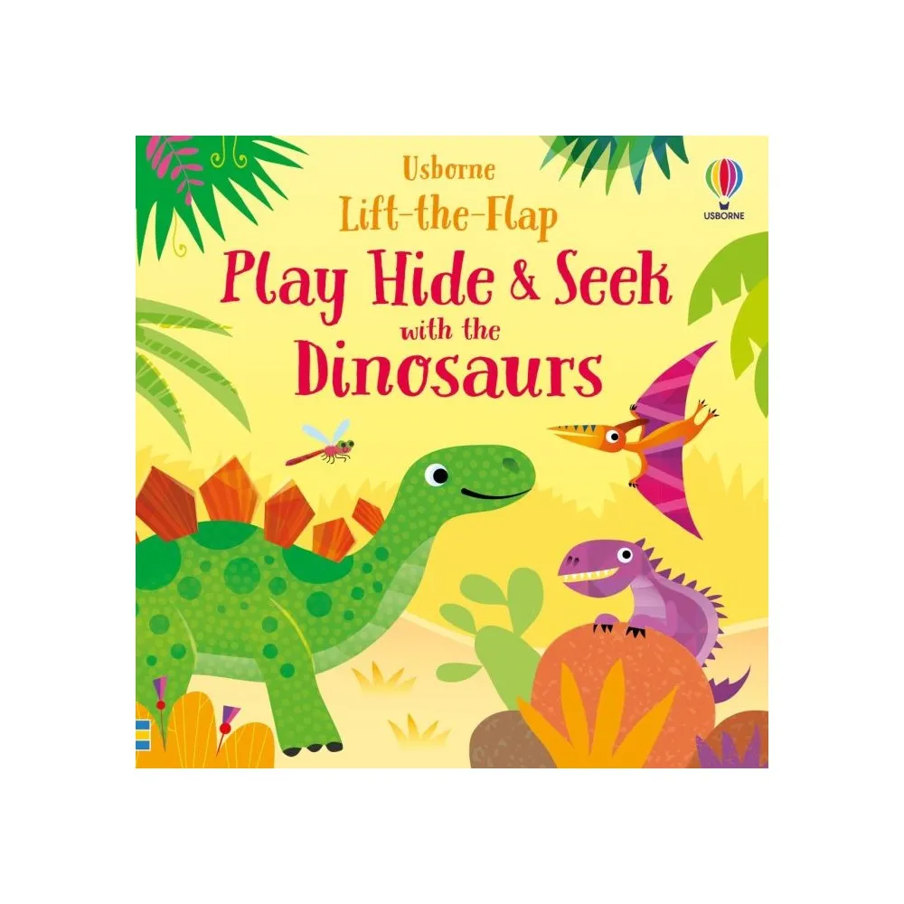 Diplodocus, Tyrannosaurus rex, Stegosaurus and Triceratops are among the dinosaurs playing hide-and-seek, with lively speech bubbles and holes to peep through adding to the fun.