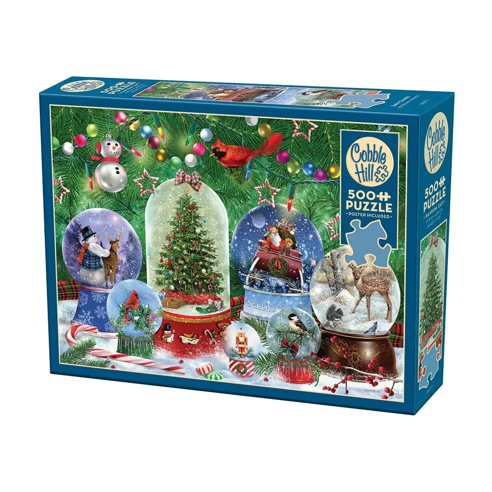 Welcome winter with open arms and this 500-piece jigsaw puzzle. Shake, rattle and roll your way through a snow-speckled holiday wonderland featuring snow globes, ornaments, and candy canes - sure to make your heart tingle with festive delight! Get together with friends, family, or just your hot cocoa, and let the wintery spirit in with this Snow Globe puzzle.