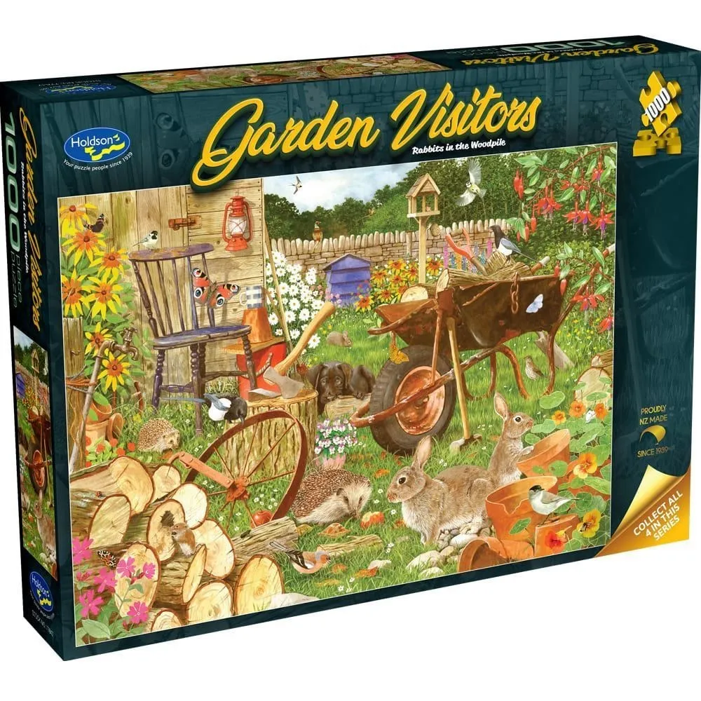 The Garden Visitors, 1000pc puzze series celebrates the charm of nature with four delightful scenes: Foxes in the Veggie Patch, Frogs in the Pond, Rabbits in the Woodpile and Squirrels on the Patio. Each puzzle captures the playful and curious wildlife that brings life to a garden.