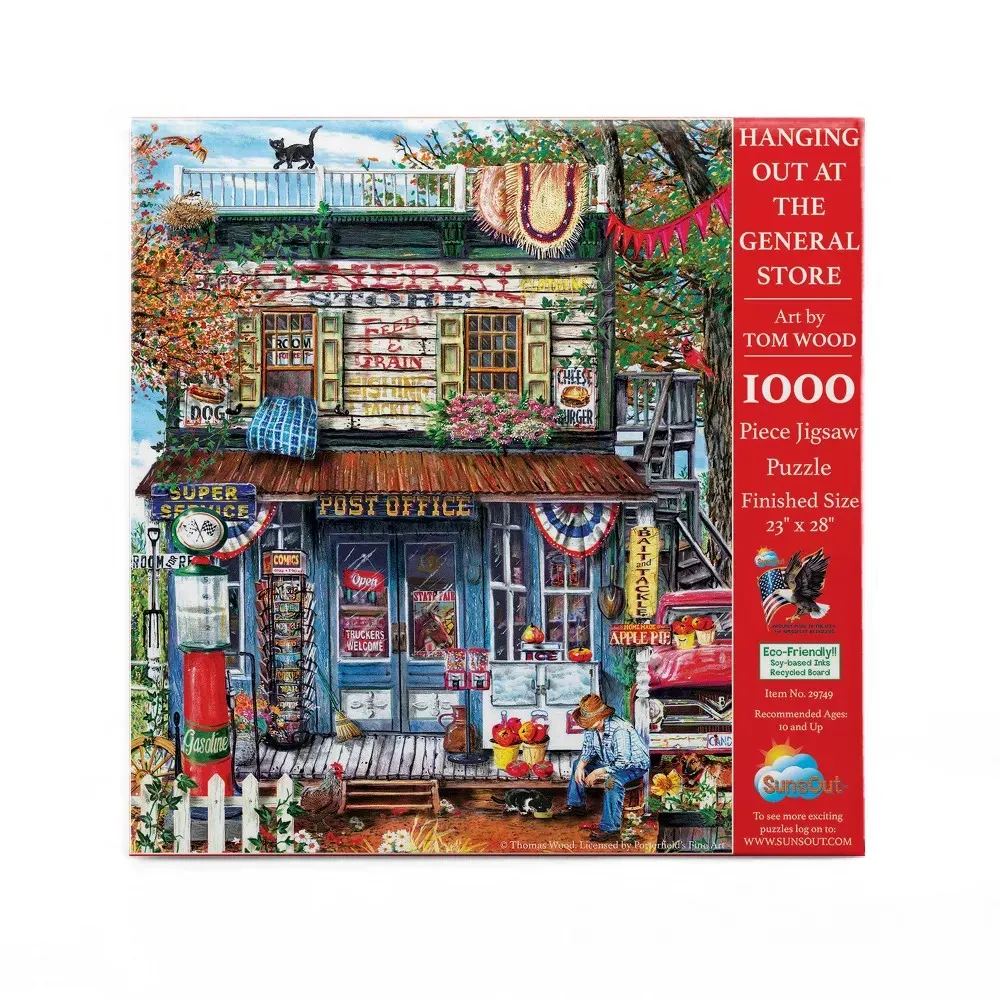 Step back in time and immerse yourself in a heartwarming vintage scene with the SunsOut "Hanging Out at the General Store"