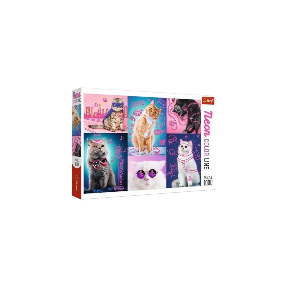 Dive into a world of vibrant colors and feline charm with the Trefl Neon Cats Puzzle (1000 pieces).