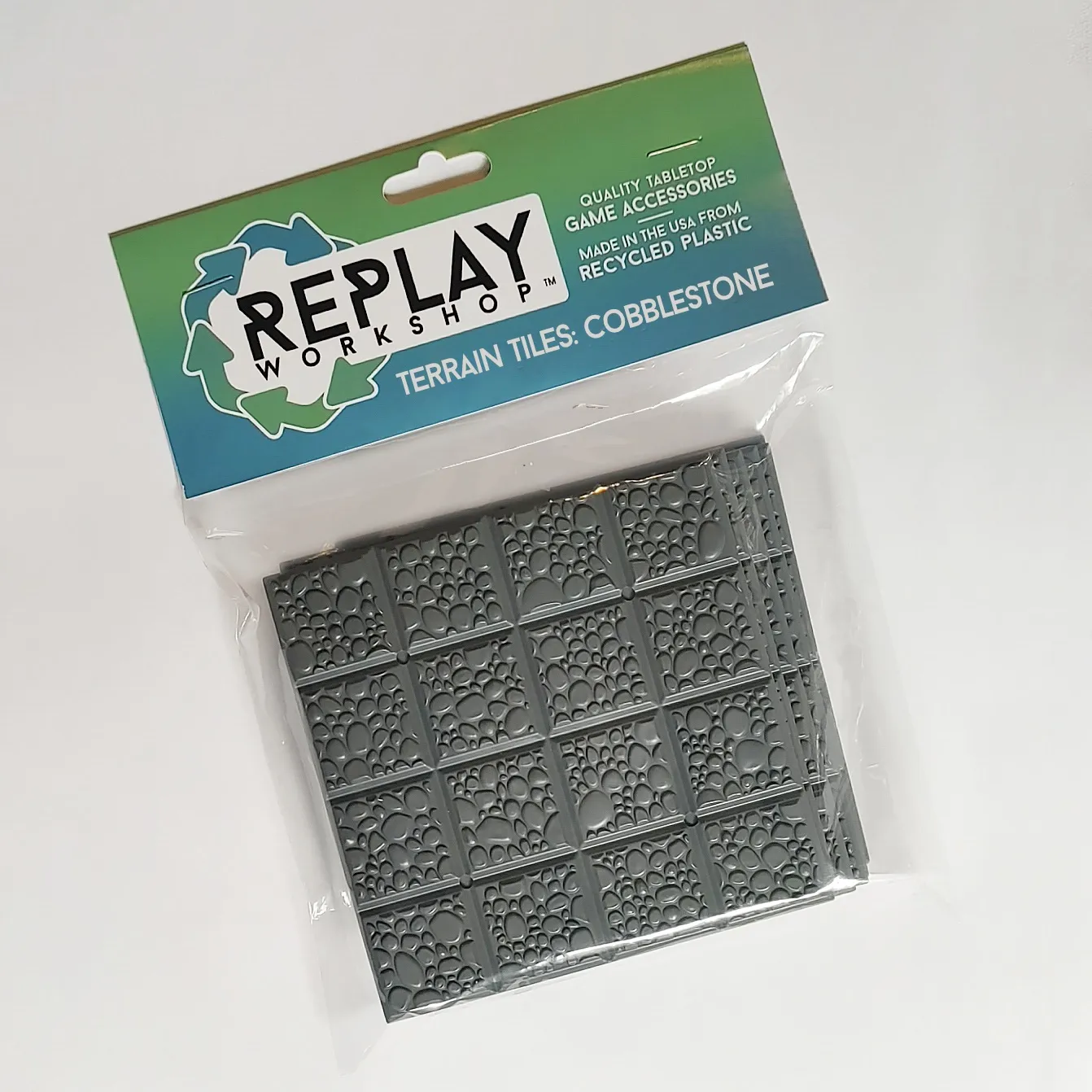 Our terrain tiles are made from 100% recycled polystyrene, including plastic sprues we collect from game and hobby stores!