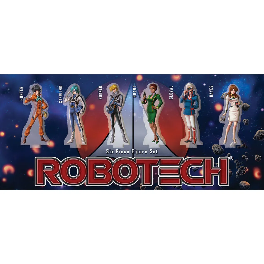 The 6 figures in this custom Acrylic Standees stand about 3″ tall. They make a great addition to the Robotech: Attack on the SDF-1 board game and look great displayed on a desk or shelf.