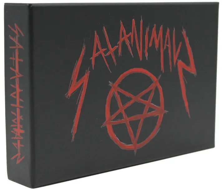 The goal of Satanimals is to build and maintain the ULTIMATE demonic petting zoo! Draw visitors, zoo keepers and SATANIMALS from the queue of cards to help you expand your zoo. Visitors may be kept for points or tossed into the sacrificial pit to stop rivals petting zoos from progressing. There are 5 different SATANIMALS to collect for your petting zoo in order to attract visitors: Karma the Dog, Ouija the Alpaca, Lucifer the Goat, Envy the Peacock and of course, Sloth the Sloth! Place your SATANIMALS down in stacks, the more SATANIMALS in a stack, the more points it's worth. But be wary, a zoo doesn't run itself... You will need to hire zoo keepers to protect you animals from any nasty sacrifices conducted by your opponents. How will you build your zoo? Quickly, to catch your opponents off guard, or slowly, to amass a grand amount of points?
