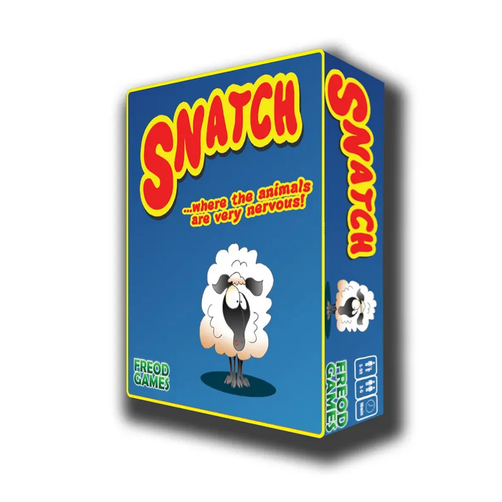 In Snatch, a new take on Spoons and similar designs players try to collect the full set of one type of animal card, while passing unwanted cards to the next player. Aside from simply collecting all of the cards, though, a number of tokens lie in the middle of the table, and if a player can collect a set of cards matching one of these tokens, then they can collect one fewer card and still win.