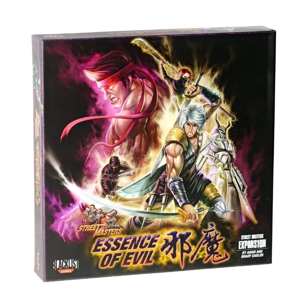 The Essence of Evil expansion to Street Masters introduces 1 new fighter deck, 1 new enemy deck, 2 new stage decks, and more! Discover the dark secret behind Kyoryu as you face off against him in his dark new form. With the help of Hanzo and his mastery of weapons, just maybe you can survive the deadly new force known as the Ayakashi!