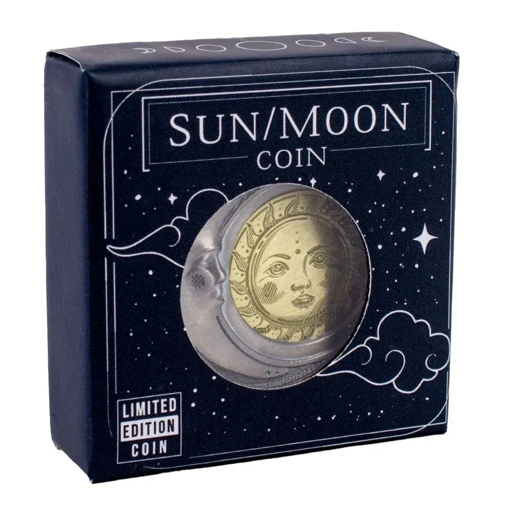 Embrace the celestial charm with the Sun and Moon Coin. This limited edition keepsake features two interlocking coins that come together to form a unique whole, perfect for those who cherish both the sun and the moon.