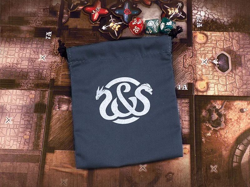 A fine silkscreen-printed cloth bag with metallic silver imprint. Use this bag to randomly draw Critical Hits during your quests, or as a stylish accessory to carry your dice around when playing Sword & Sorcery® or any other fantasy adventure game. Available in two colors (black and purple).