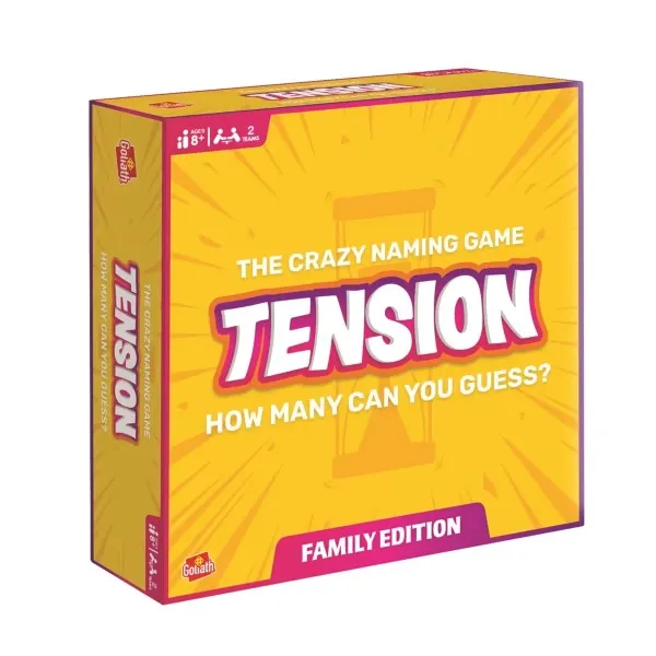 Tension is a game for 2 teams of 2 or more people, in which you have 1 minute to name examples of a given subject, which could be anything from Annoying personal habits to Foods that are naughty but nice.